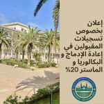 إعلان بخصوص دفع حقوق التسجيل للمقبولين في فئه ماستر 20%