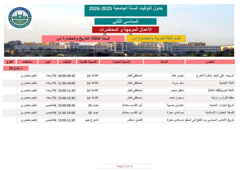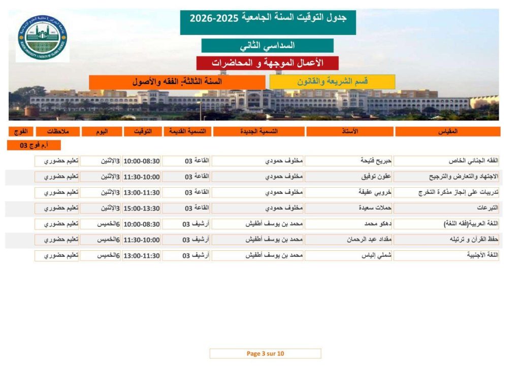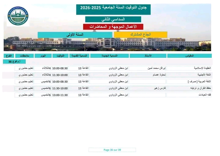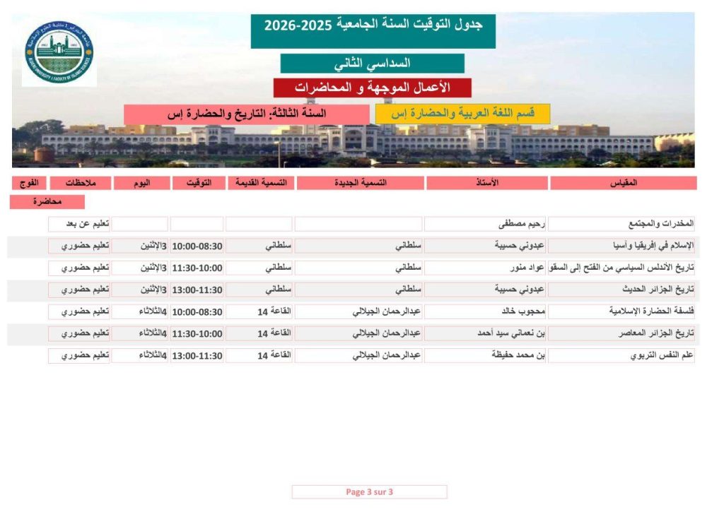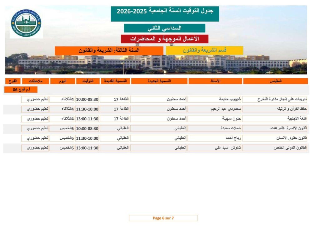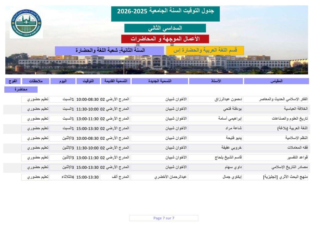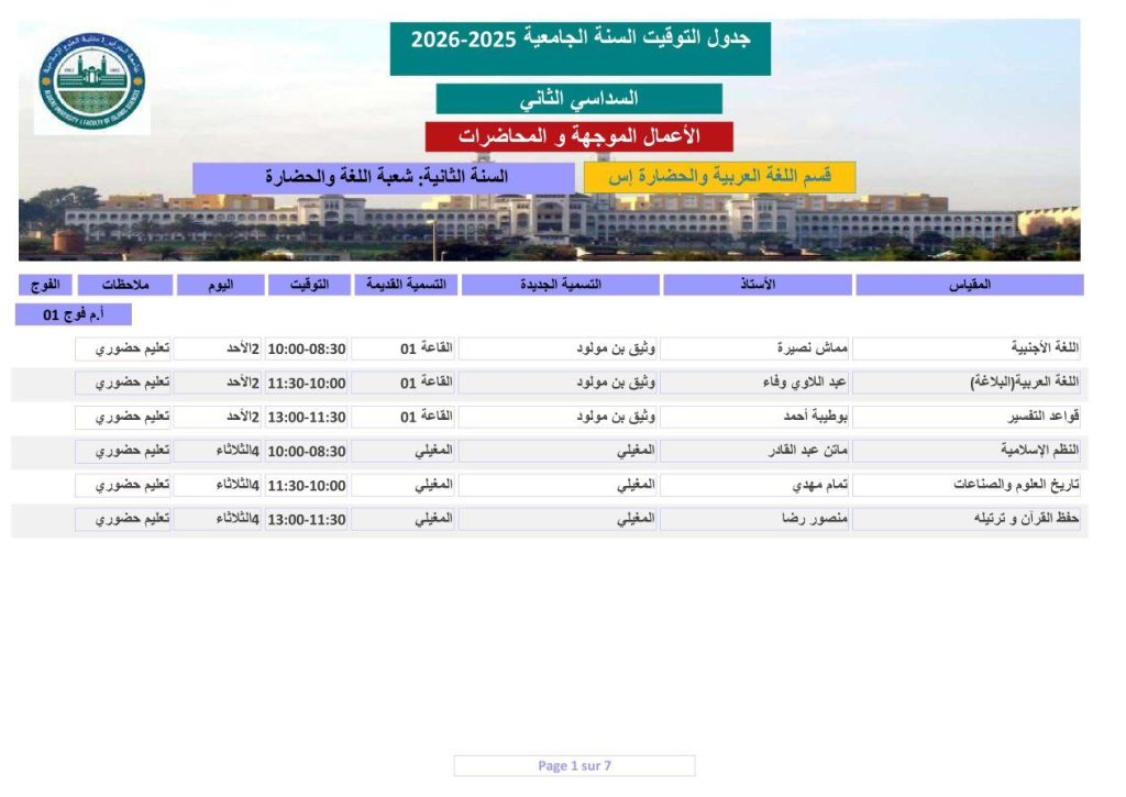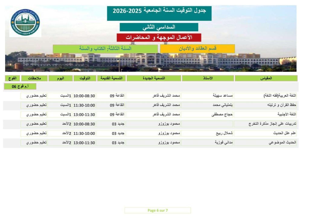 اعلان بخصوص بداية السداسي الثاني 2025/2026