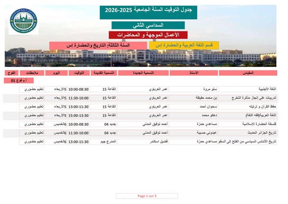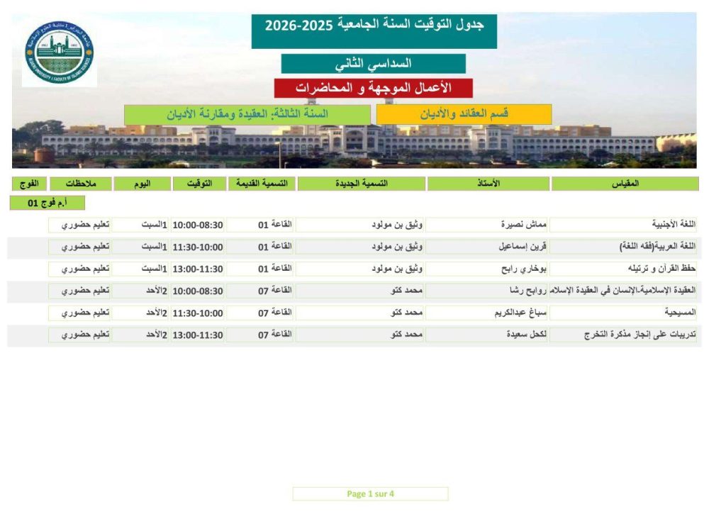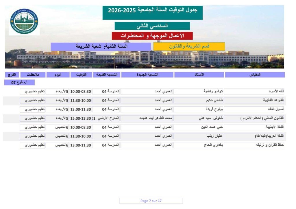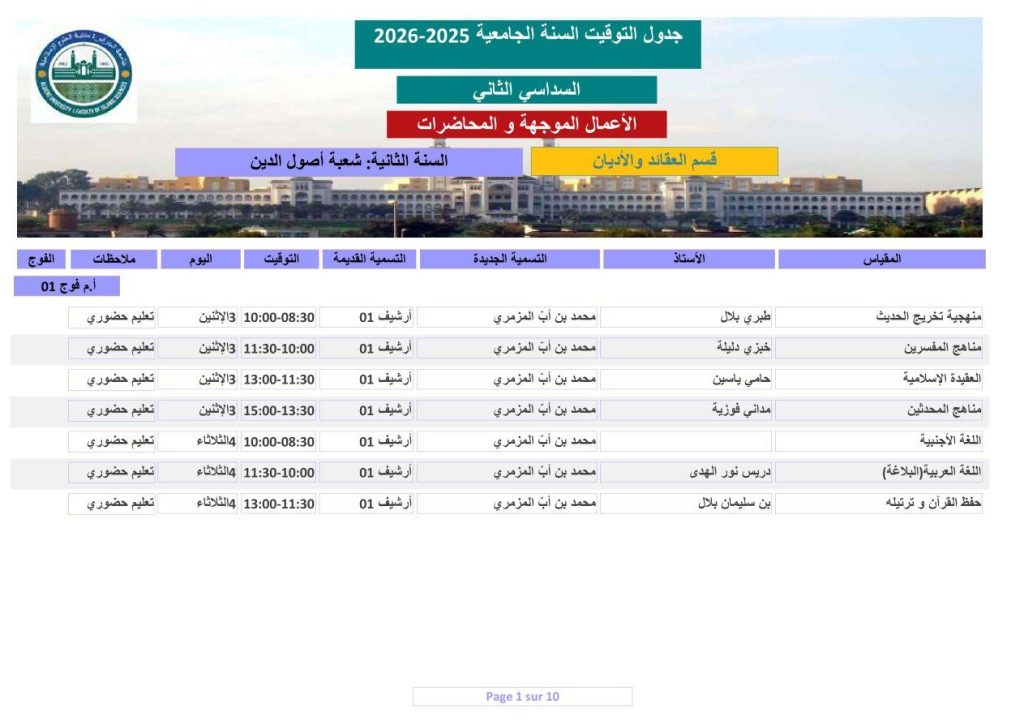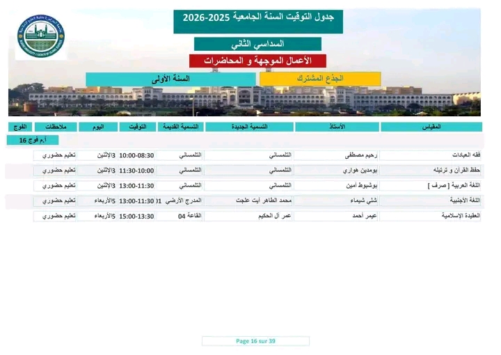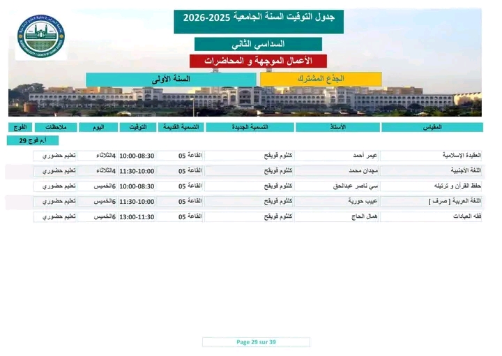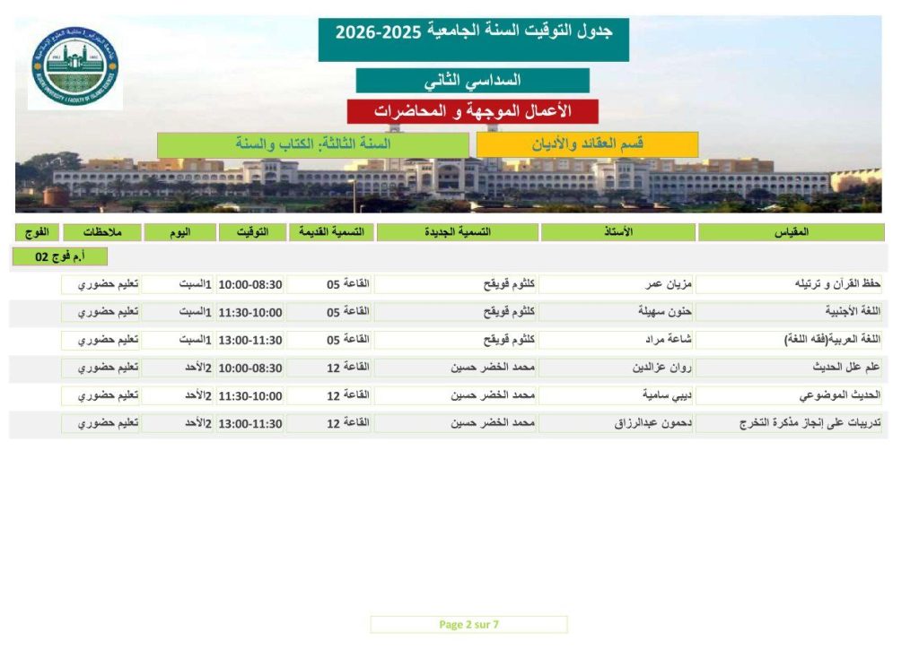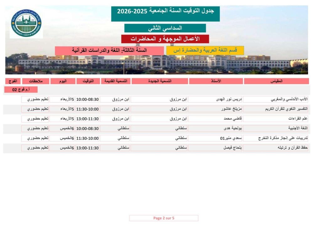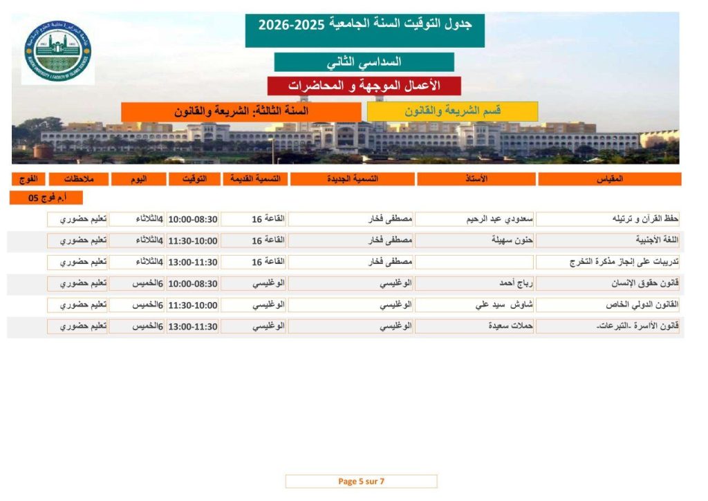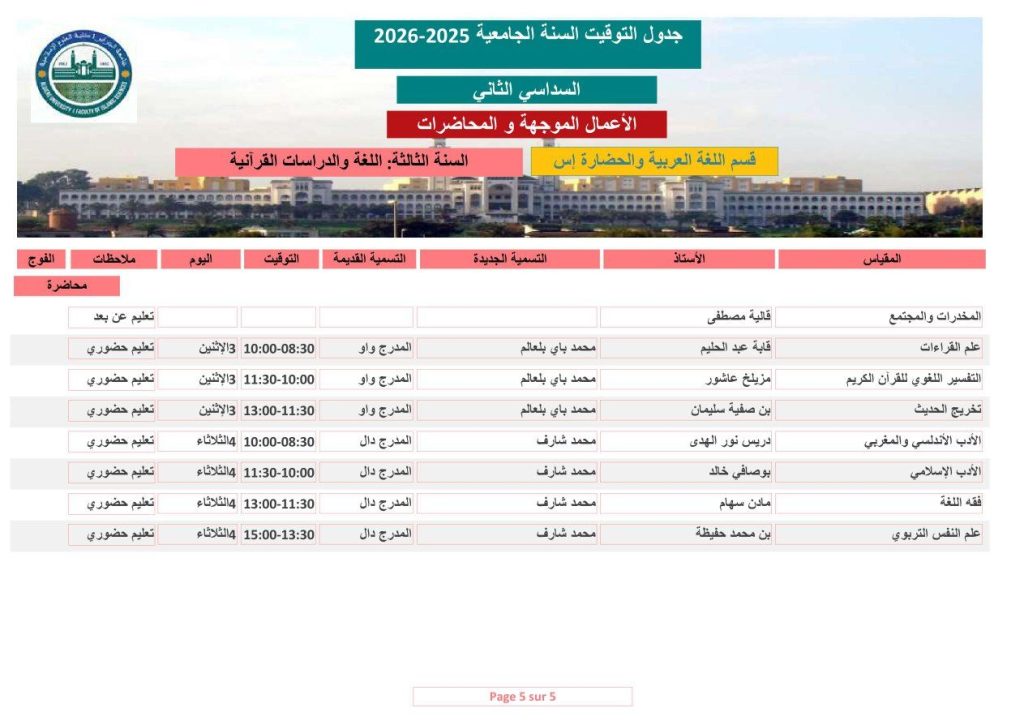 اعلان بخصوص بداية السداسي الثاني 2025/2026