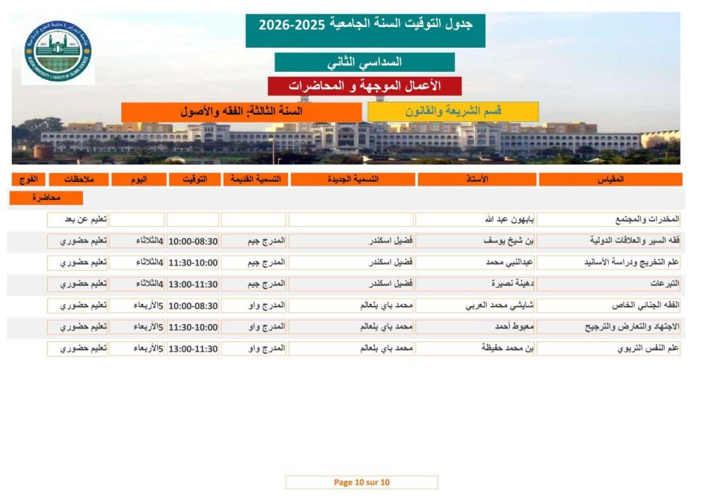 رزنامة التوقيت الاسبوعي للسداسي الثاني -طور الماستر-