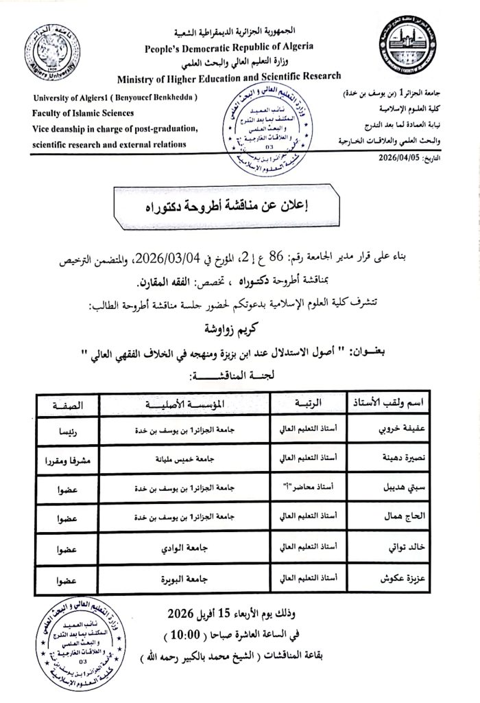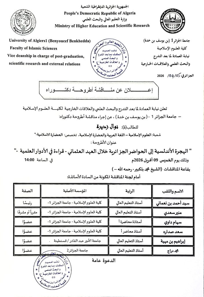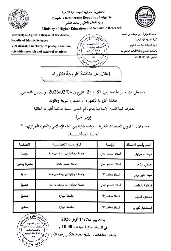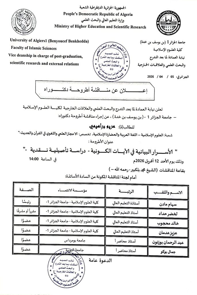 Continue Reading Previous يوم دراسي اترك تعليقاً إلغاء الردلن يتم نشر عنوان بريدك الإلكتروني. الحقول الإلزامية مشار إليها بـ *التعليق * الاسم * البريد الإلكتروني * الموقع الإلكتروني احفظ اسمي، بريدي الإلكتروني، والموقع الإلكتروني في هذا المتصفح لاستخدامها المرة المقبلة في تعليقي. مقالات مشابهة طور الماستر فضاء الطالب رزنامة التوقيت الاسبوعي للسداسي الثاني -طور الماستر- 29 يناير، 2026 facsi طور الليسانس فضاء الطالب رزنامة التوقيت الاسبوعي للسداسي الثاني -طور الليسانس- 29 يناير، 2026 facsi 2 فضاء الطالب ملتقيات ،ندوات و أيام دراسية ندوة لطلبة الماستر 2 حول منهجية اعداد مذكرة التخرج 28 يناير، 2026 facsi 6